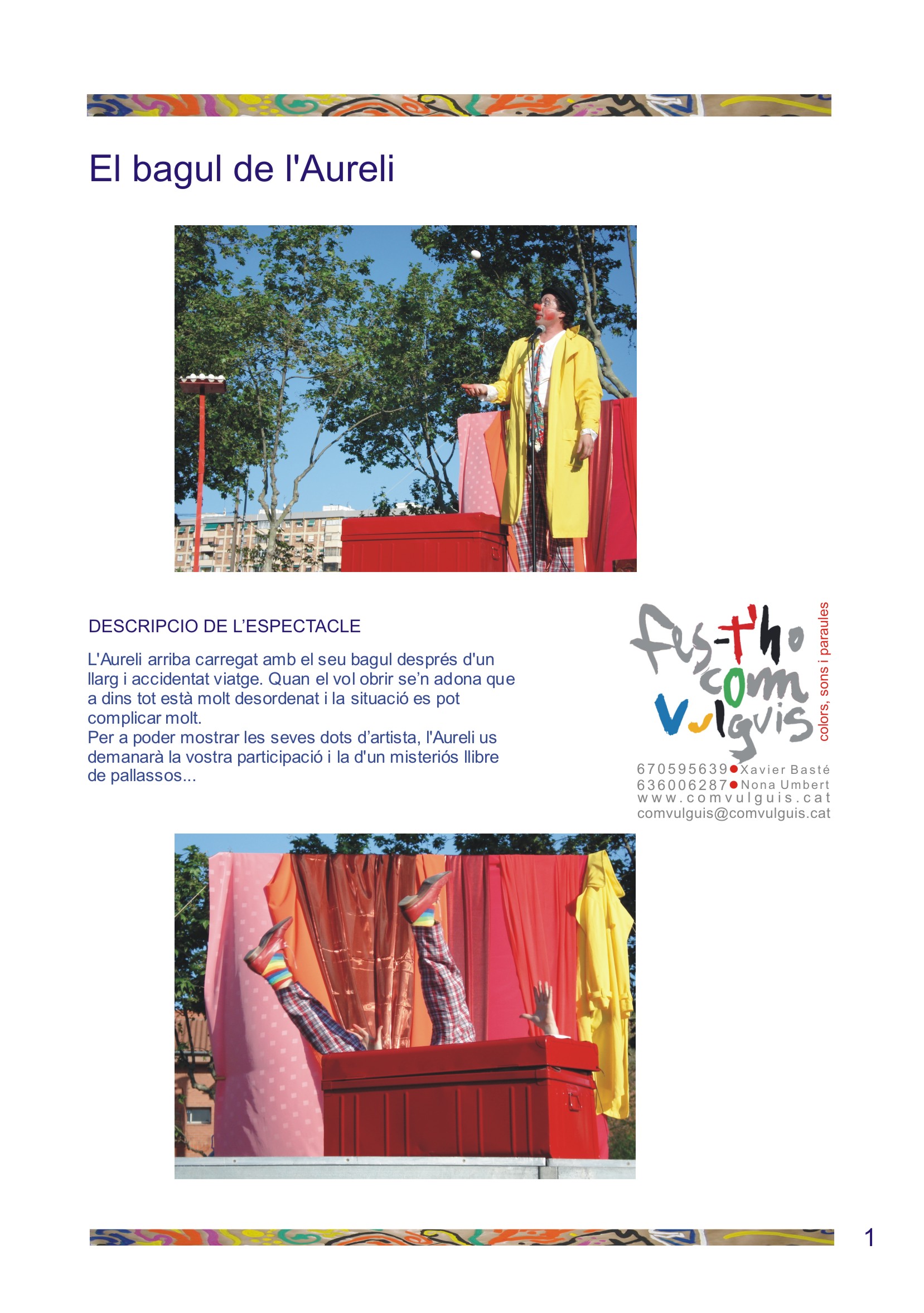 Ahora os presentamos, EL BAGUL DE L'AURELI, un espectáculos de payasos moderno y clásico, participativo y muy divertido.